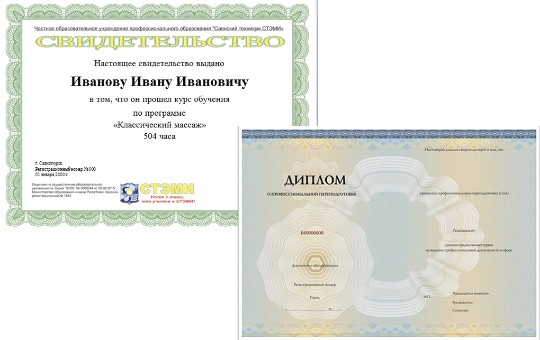 По окончанию обучения вы получите диплом о профессиональной переподготовке, либо свидетельство, подтверждающие, что вы прослушали все уроки курса "Классический массаж".